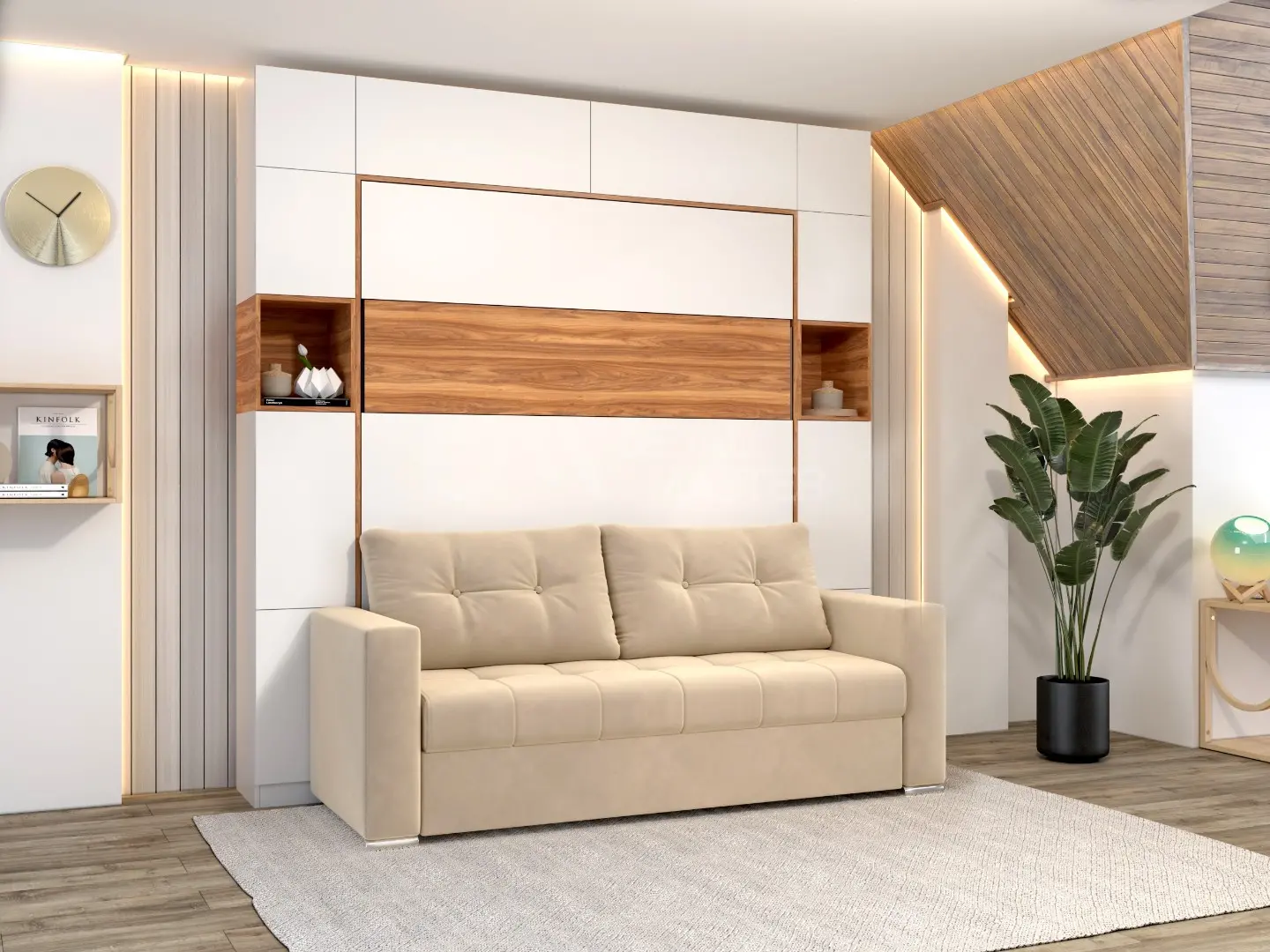 Сделаем шкаф‑кровать под вашу комнату: размеры, фасады и цвет, наполнение (полки/шкафы/антресоли). Учтём ниши, плинтус, розетки и выступы — чтобы всё встало точно и выглядело как встроенное.