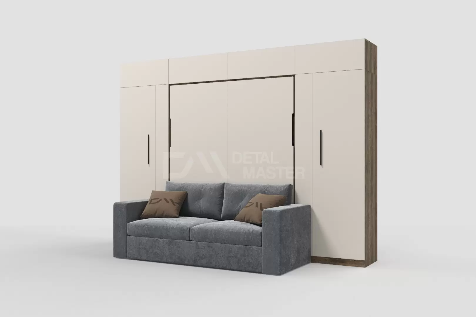 Шкаф-кровать трансформер с диваном "Deluxe platinum Balance" работает на механизме раскладывания собственной разработки "Balance". Кровать раскладывается легким движением руки, превращаясь в полноценное спальное место. Просто потяните за ножку-маятник, которая самостоятельно фиксируется в нужное положение при опускании.